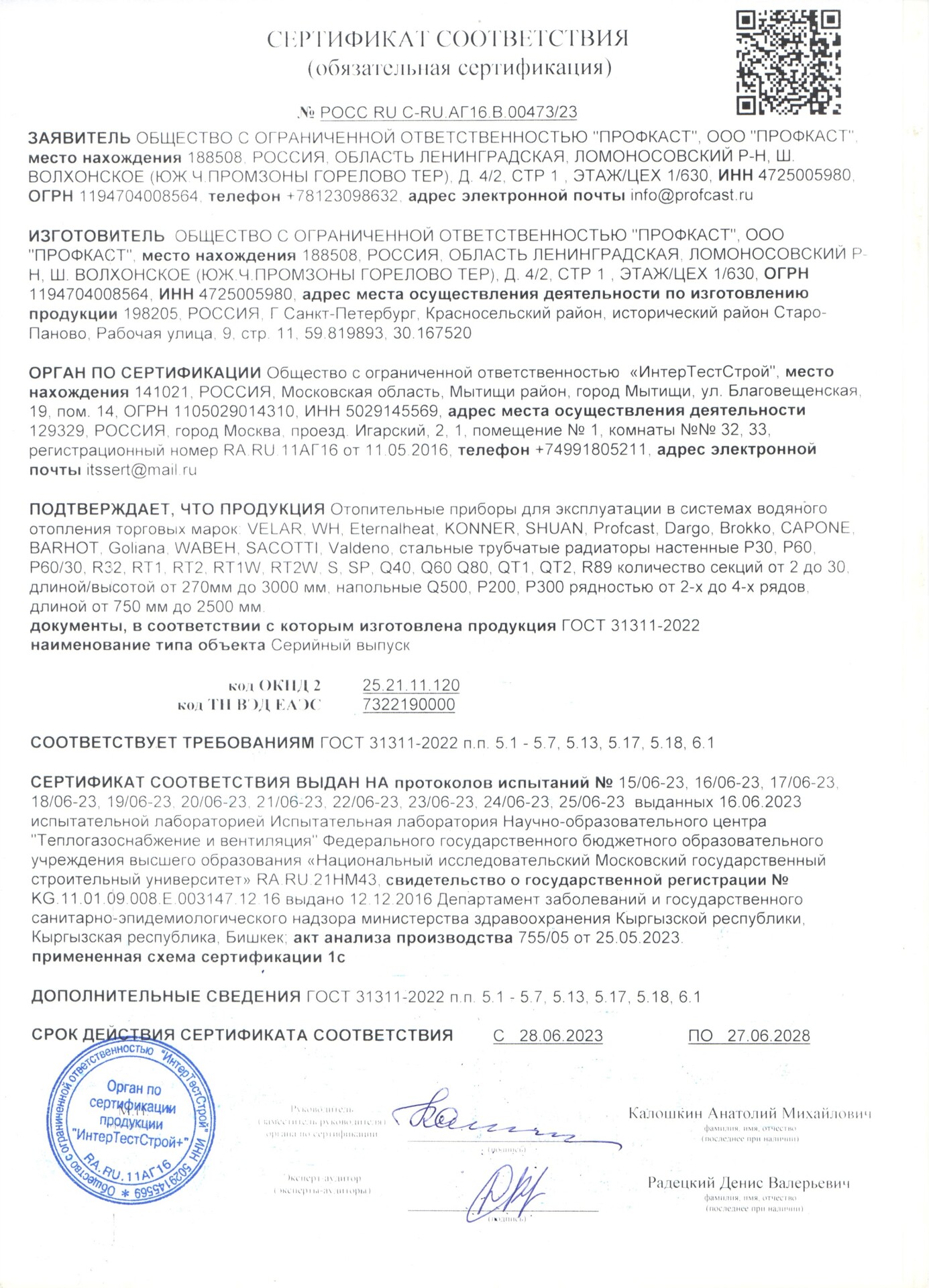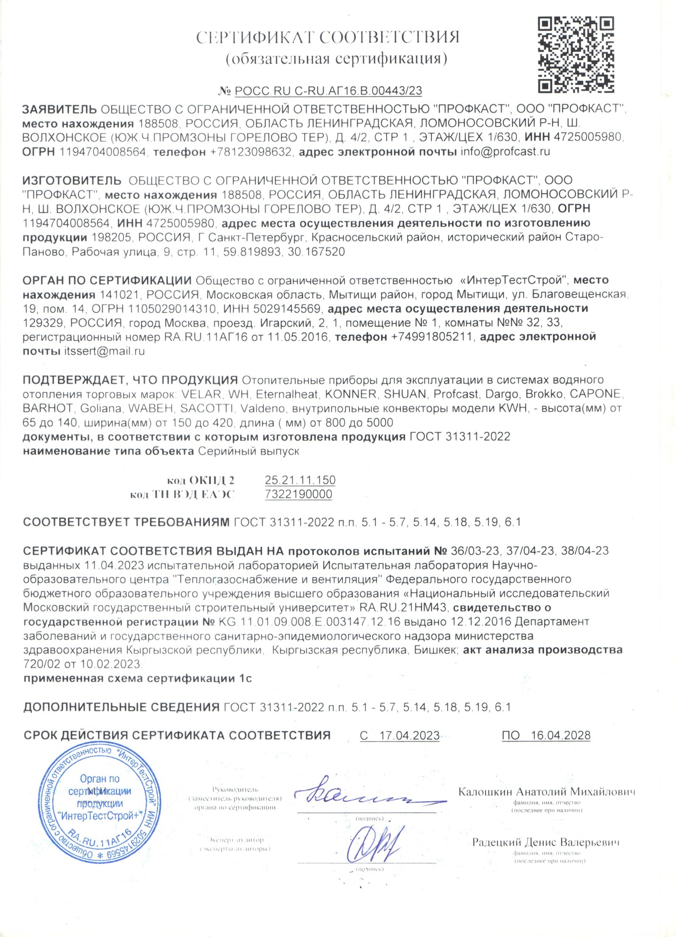 ПРОФКАСТ - российский производитель отопительного оборудования под брендом WH. Занимаемся производством внутрипольных конвекторов и дизайн-радиаторов, полотенцесушителей, трубчатых радиаторов с 2015 года. Производство оснащено современными оборудованием. Радиаторы прошли обязательную сертификацию и испытания. Продукцию под брендом WH можно купить в сети магазинов "Ретро Арт"